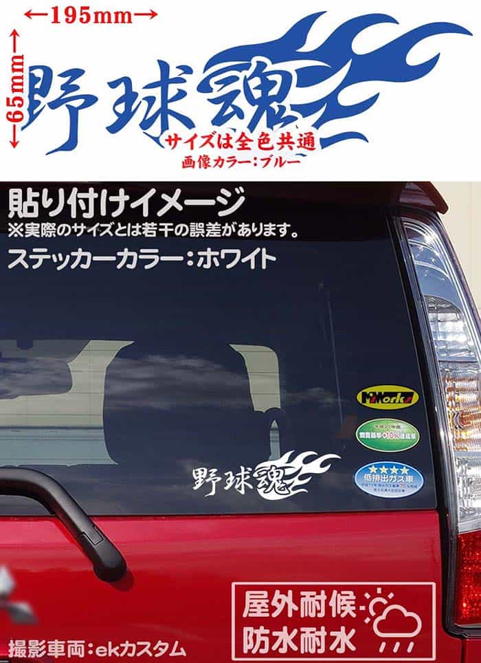 【クーポン有】 野球魂 (2枚1セット) カッティングステッカー 車 バイク かっこいい スピリット ユニーク 個性 スーツケース タンク リア ウインドウ カウル ヘルメット 野球 ステッカー チューン 防水 アウトドア 耐水 シール 全12色 約65mmX約195mm TAMA-001-03