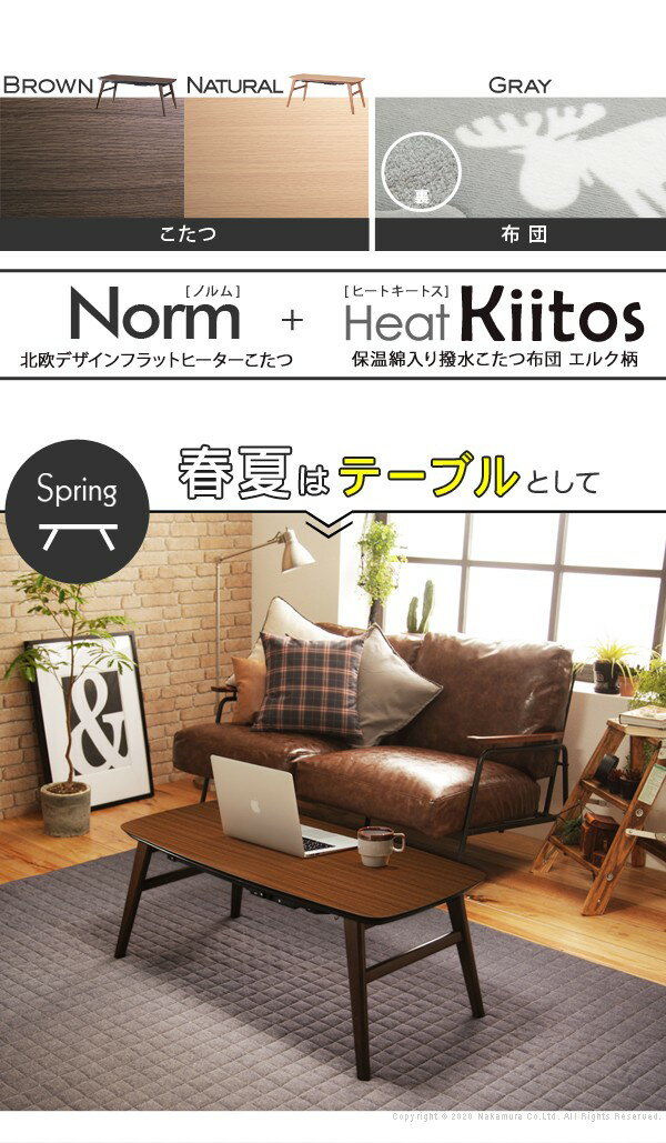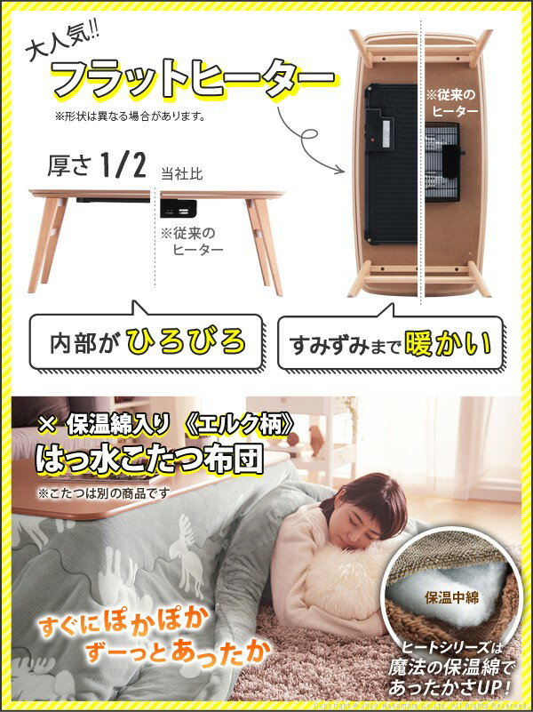 _____________________________________________________________________こちらの商品は[北欧デザインフラットヒーターこたつ〔ノルム〕100x50cm +保温綿入りはっ水こたつ布団エルク柄 2点セット]になります。