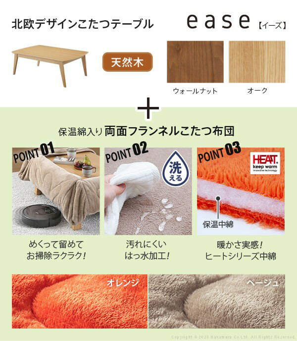 季節・空調こたつ 電気こたつ 北欧デザインこたつテーブル〔イーズ〕120x75cm +保温綿入り両面フランネルこたつ布団 2点セットI-5701090 セット こたつ布団 あったか コタツ テーブル 座卓 おしゃれ ソファテーブル リビング ロー 天然木 ウォールナット オーク